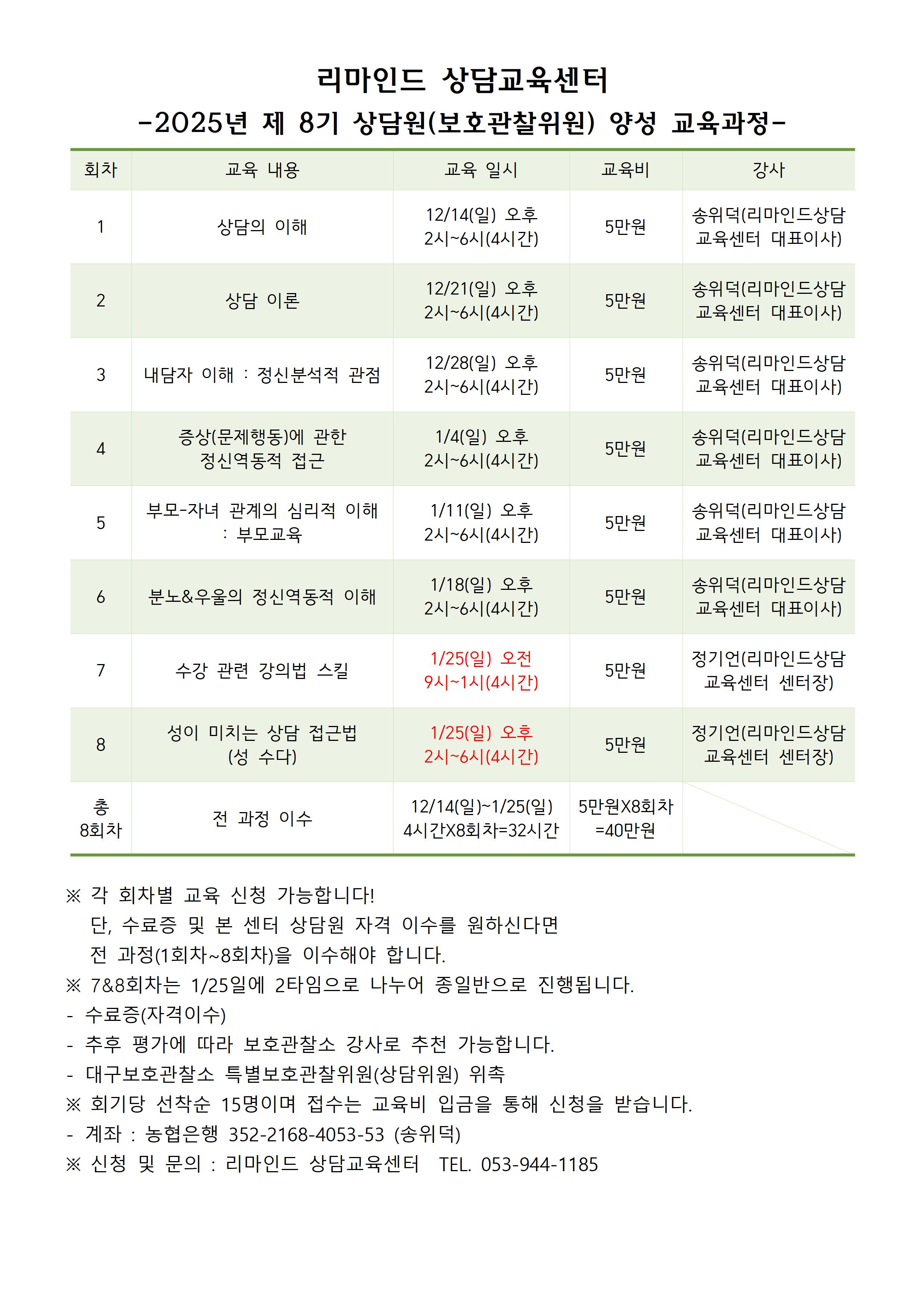 2025³â Á¦ 8±â »ó´ã¿ø ¾ç¼º ±³À°°úÁ¤ ¾È³» µå¸³´Ï´Ù.